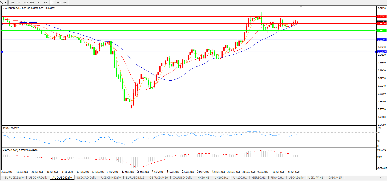 澳元兑美元AUDUSD 日线图: