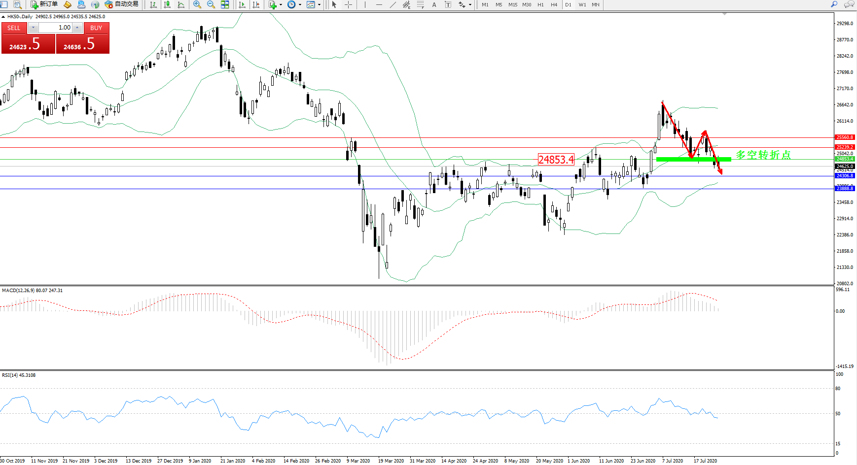 恒指HK50 ——日K线图显示: