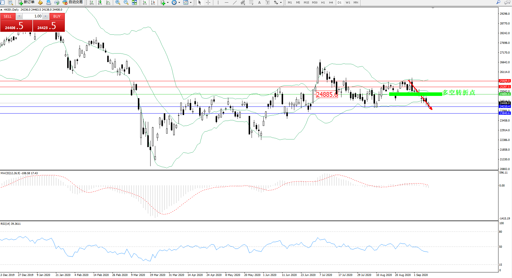 恒指HK50 ——日K线图显示: