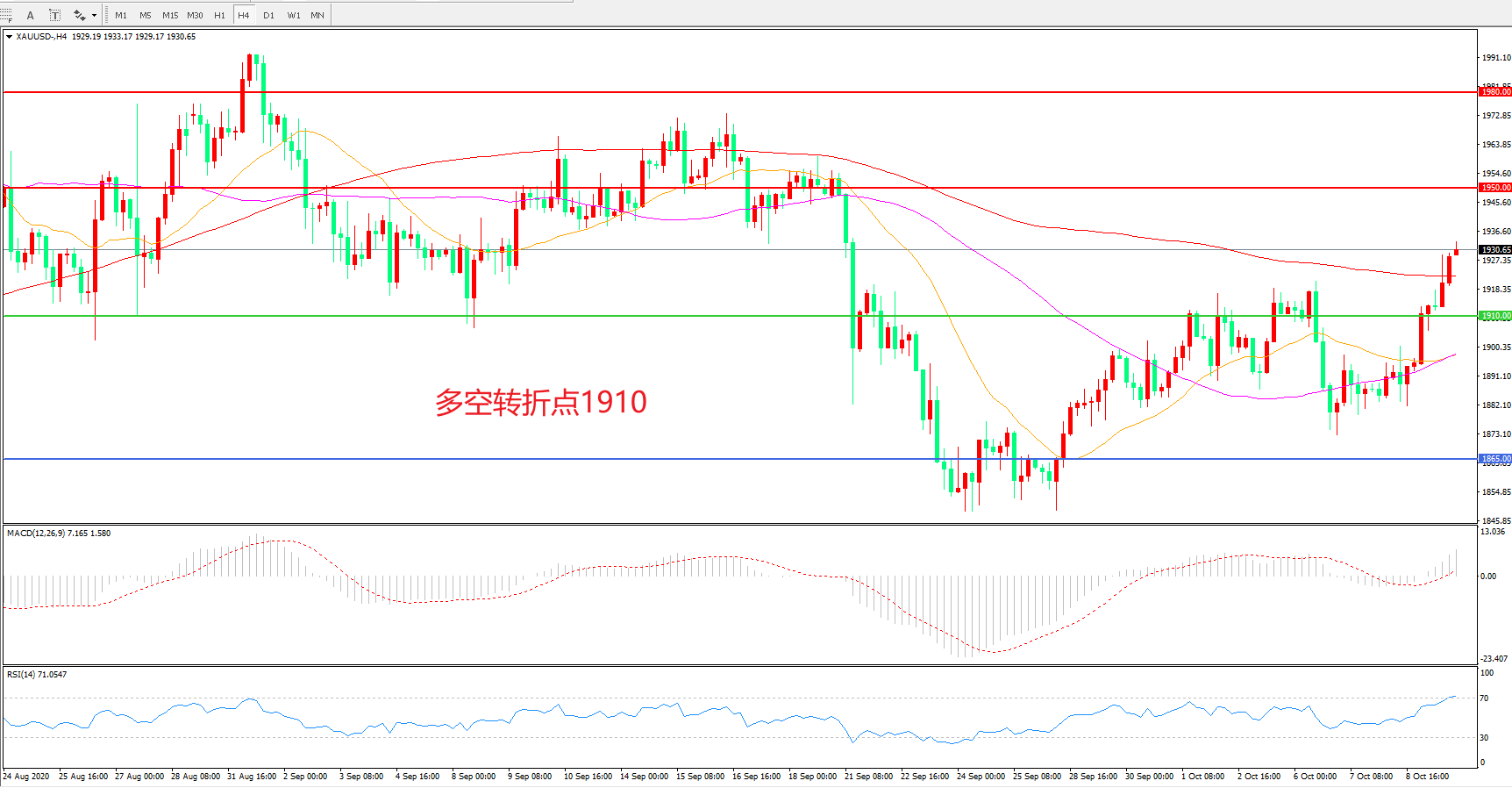 交易策略:在1910.00之上看涨,目标1950.00   1980.00