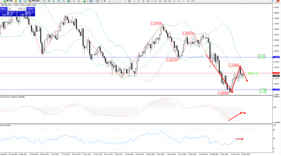 低位多头动力短期震荡上扬,抵达1332980位置后遇阻回撤,纠结于布尔带指标中轨上侧整理,短期空头动力再度入场向下移动,布尔带指标呈收口走势中,上方压制关注1.33834,低位支撑关注1.30347附近,关注1.32126附近转折点,MACD指标处于空头区域维持整理缓慢上移,RSI指标低位多头动力维持震荡上扬至50均衡线下侧徘徊中,如图: