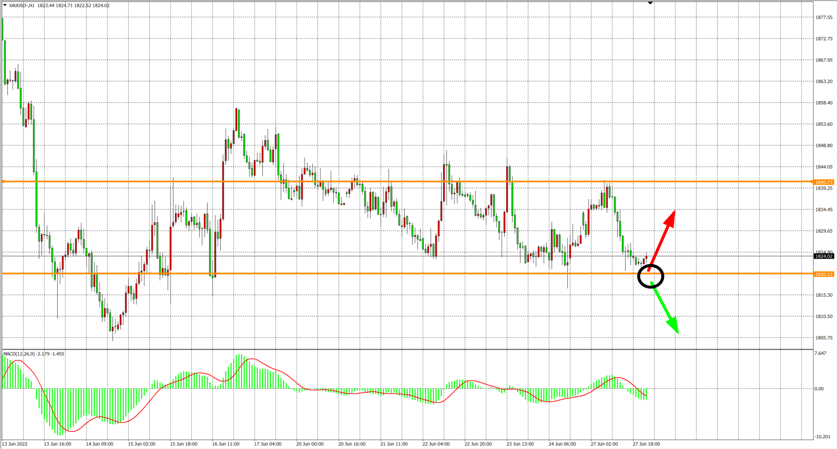 交易策略:在1820.00之下看跌,目标1810.00          1800.00