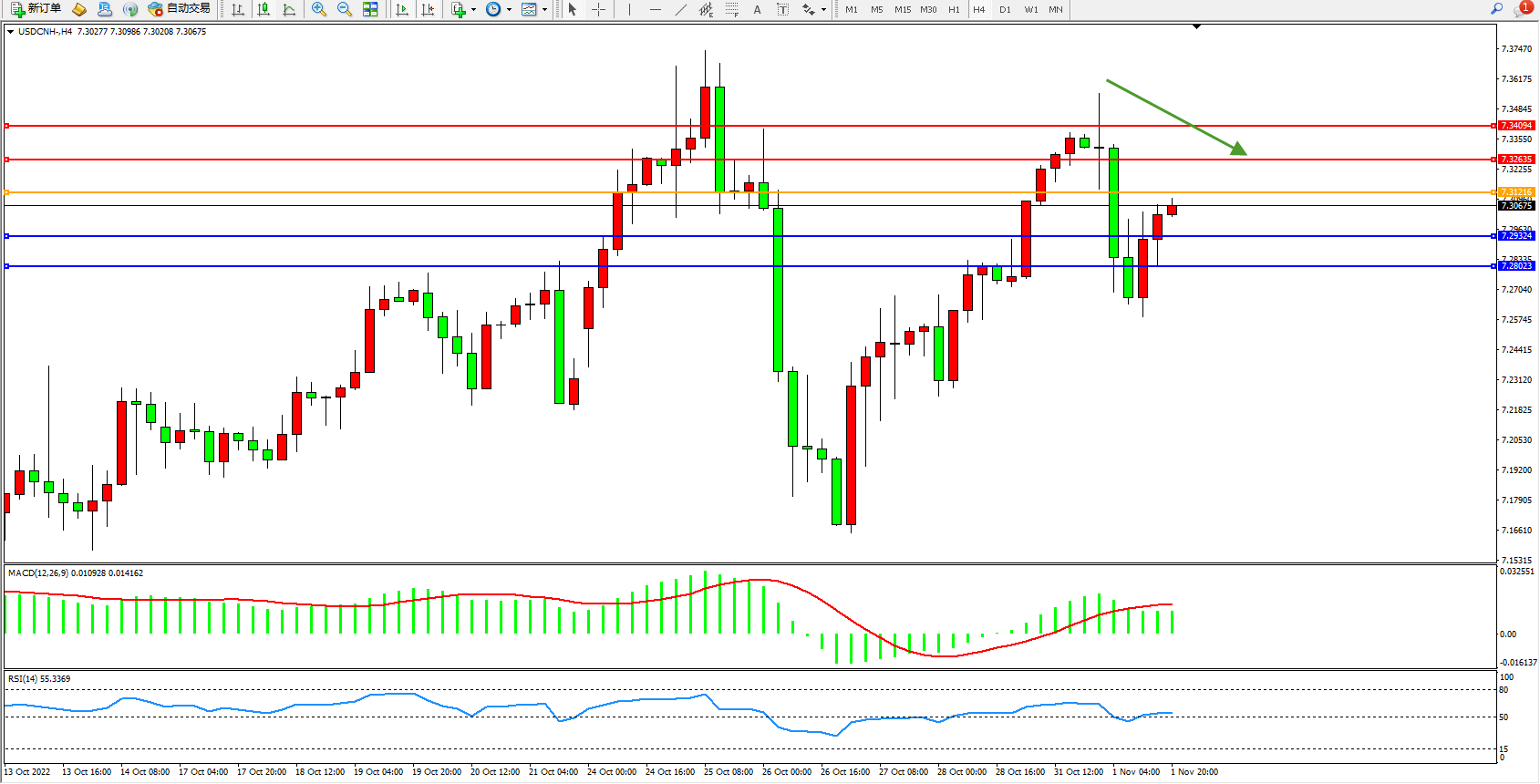 备选策略:7.31216上方看涨,目标7.32635、7.34094