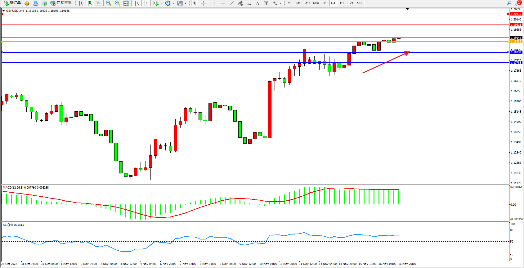 交易策略:1.18926上方看涨,目标1.19831、1.20418