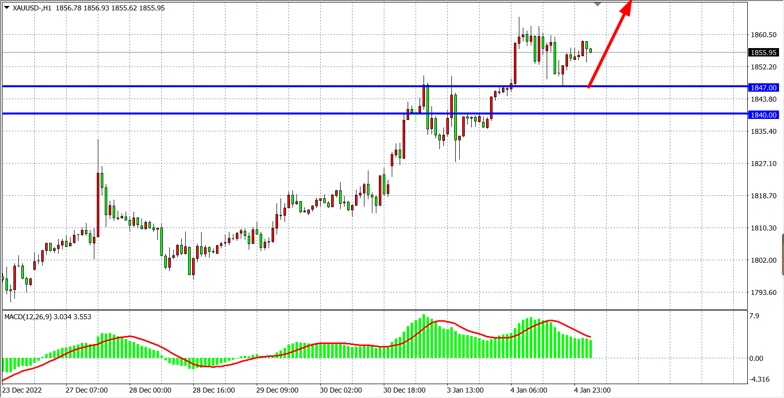 交易策略:在1847.00 之上看涨,目标1865.00         1880.00