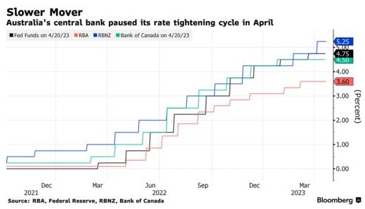 澳大利亚的核心通胀在2023年前三个月有所缓解,这为澳洲联储对物价稳步下降的预期和暂停加息提供了支持。