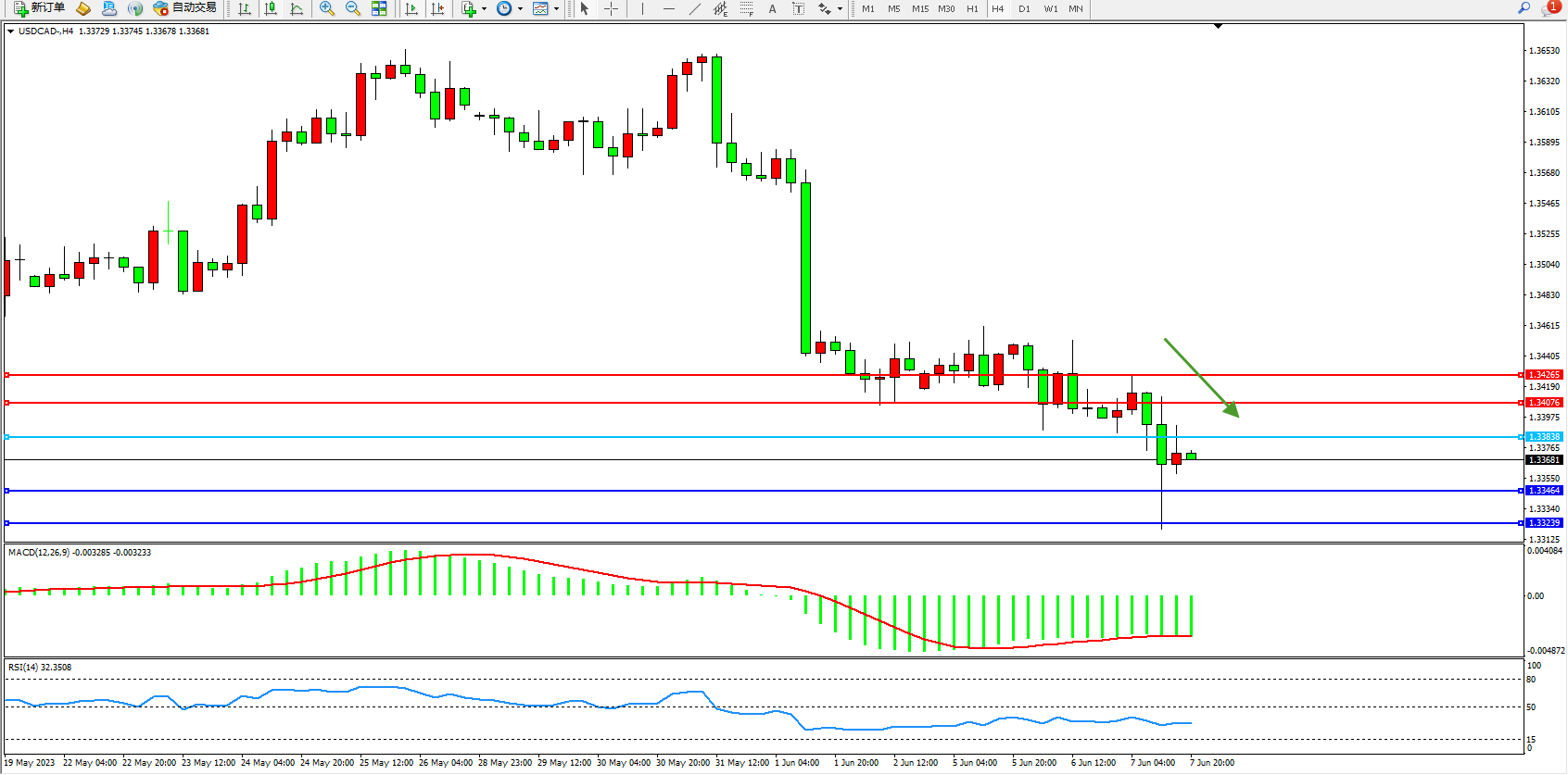 美元加元USDCAD——4小时K线图显示: