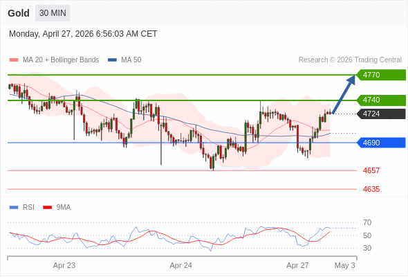 在 4690 之上,看涨,目标价位为 4740 ,然后为 4770 。